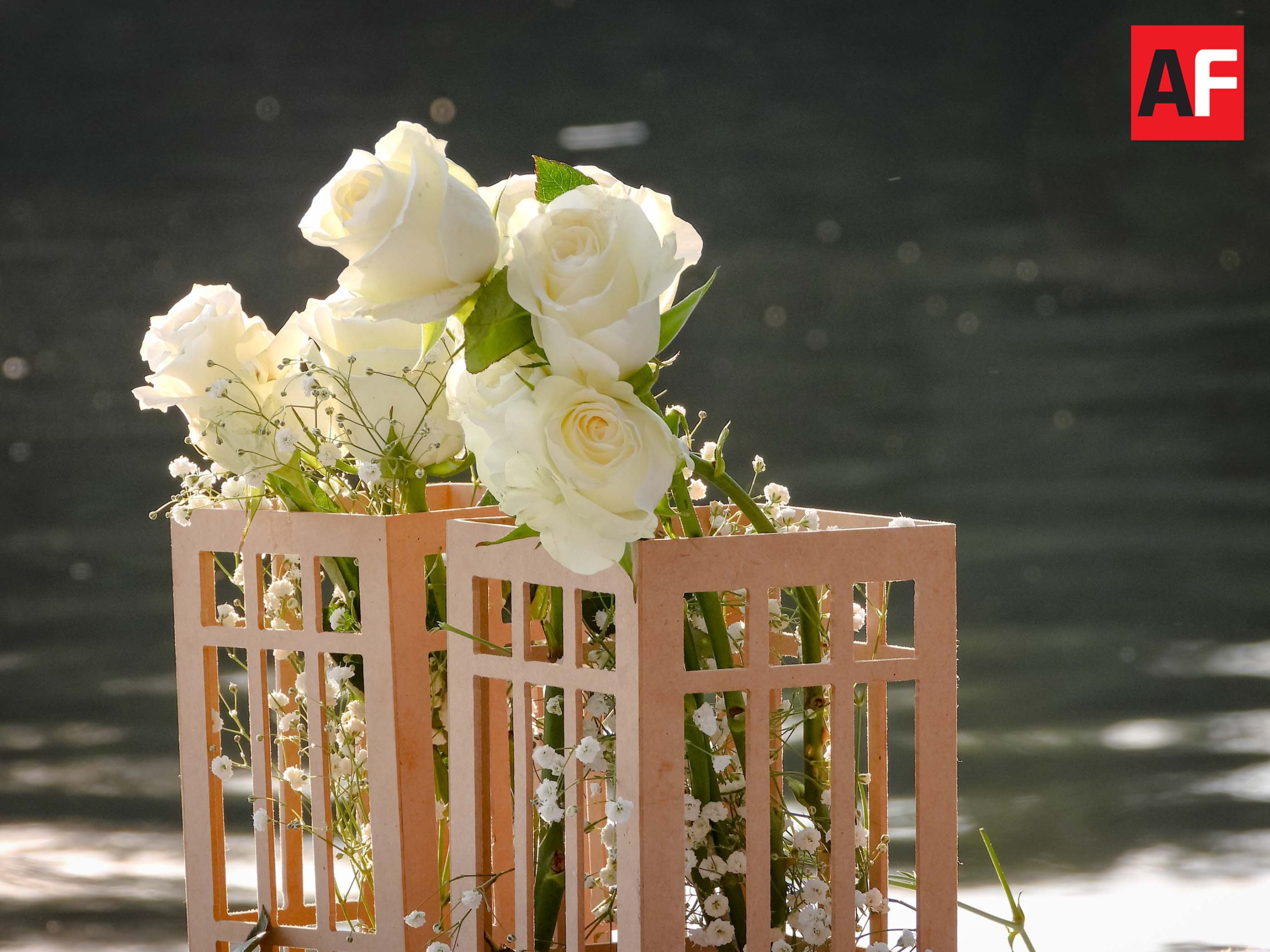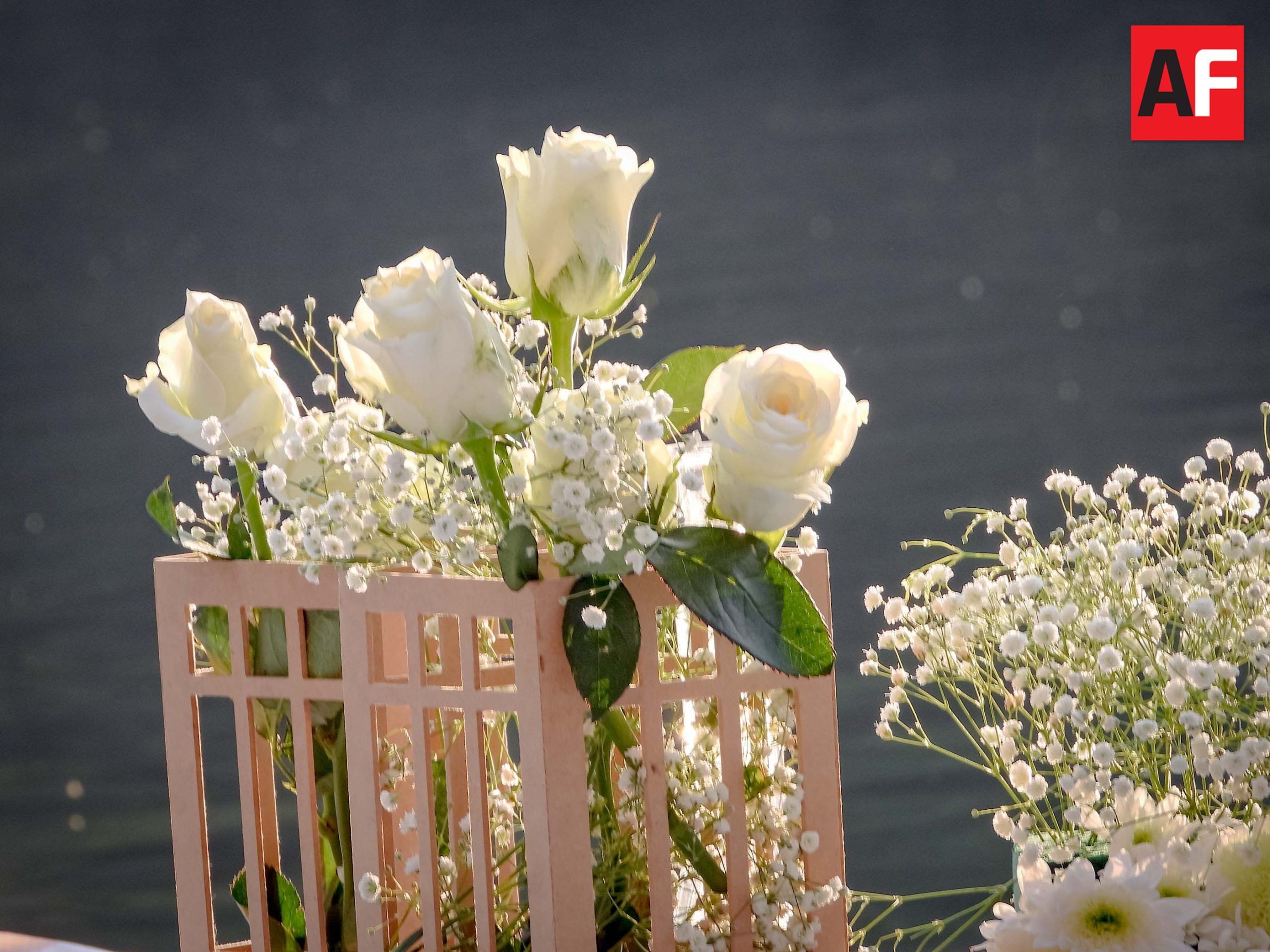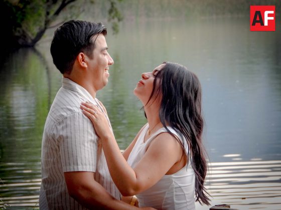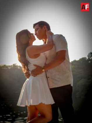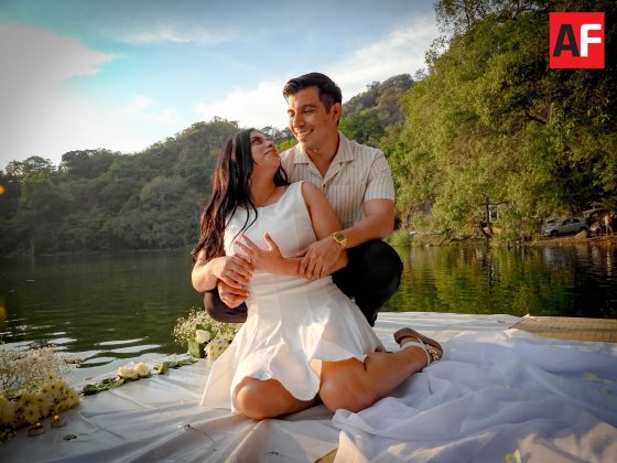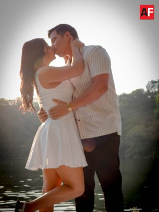 Con el lago como un espejo de tonos dorados, Kender decidió que no había mejor manera de comenzar el año que declarando su amor. El muelle de madera, habitualmente sencillo, fue transformado para la ocasión: lienzos de telas blancas que ondeaban suavemente con la brisa de la montaña y elegantes arreglos de rosas blancas crearon un pasillo de romance.