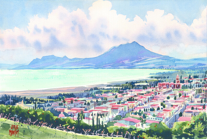 La muestra propone un recorrido por la ribera de Chapala y otros paisajes de Jalisco atravesados por el agua, donde la técnica de la acuarela se convierte en un medio para captar lo inasible: la luz, la humedad del aire y la quietud que envuelve al paisaje.