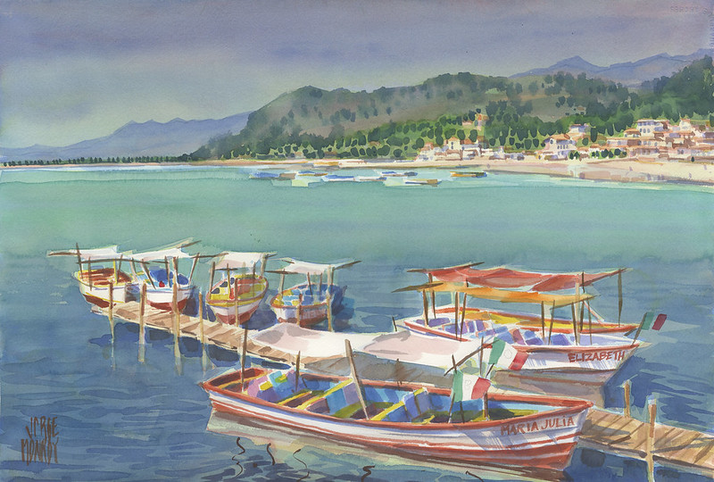Jalisco.- El universo pictórico del acuarelista Jorge Monroy, conformada por embarcaciones sobre el oleaje, arboledas, cielos abiertos y caseríos suspendidos en una atmósfera serena, se muestra en la exposición “Rumores y colores”, que se exhibe hasta el 28 de junio en el Centro Cultural J. J. González Gallo.